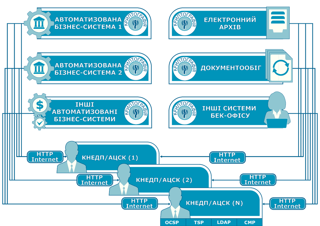 Взаимодействие с ПЭДУ напрямую (OCSP, TSP, LDAP) и через HTTP(s)-proxy.