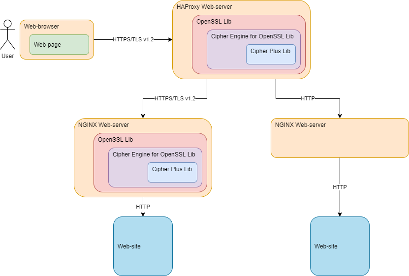 Cipher HAProxy-addon for HAProxy, який контролює навність відповідної версії OpenSSL та Cipher Engine for OpenSSL, інформує web-сторінку про використання захищеної сесії.