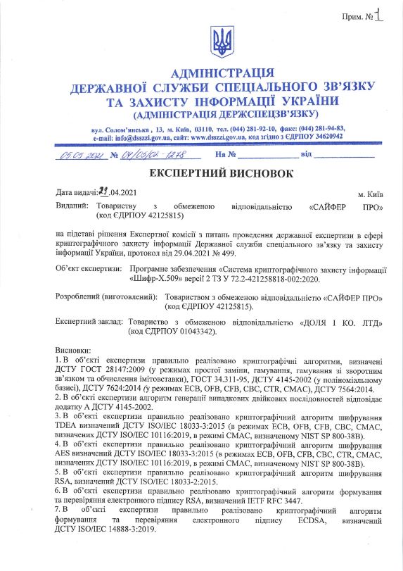 Бібліотеки функцій криптографічних перетворень «Шифр+» (Версія 2.1).
